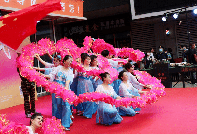 6月29日,北京市朝阳区,连接市区和副中心区的常营乡,在“福第V中心”产业园的文化广场,举办了“2021逐梦新时代,讲好中国故事,展示企业风采”为主题的歌舞文化的公益汇演。